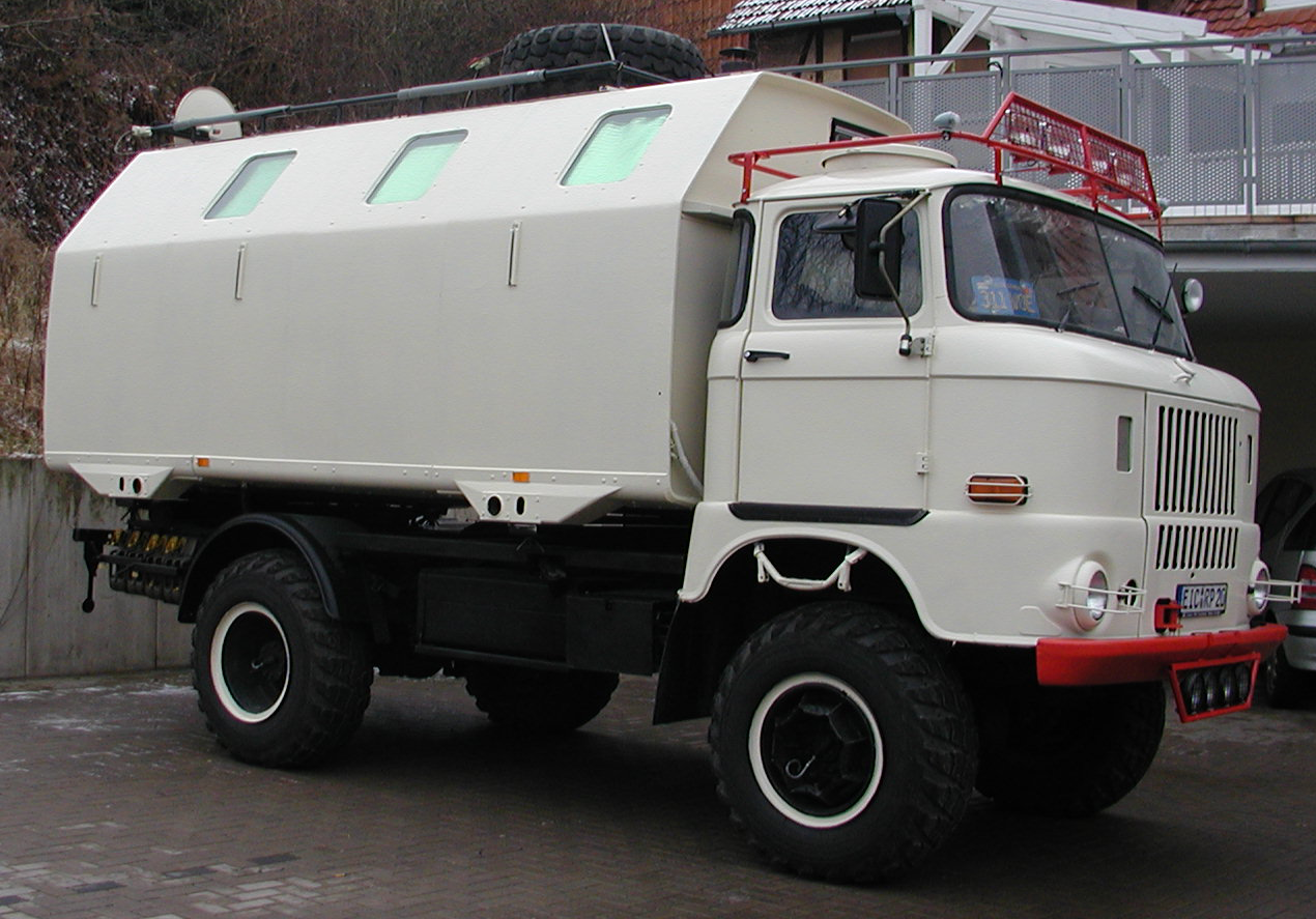 Dieser ehemalige NVA-Werkstattwagen ist ein Expeditionsfahrzeug der Extraklasse. Ausgestattet mit einem zuschaltbaren Allradantrieb, Untersetzung und Sperren an allen Achsen, sowie einer Reifenregeldruckanlage und Wat-Anlage, ist er für härtestes Gelände konzipiert. Der 125 PS starke Dieselmotor in Kombination mit dem isolierenden GFK-Koffer macht den IFA LKW W50 "Expedition" 4x4 zum idealen Begleit- und Bergungsfahrzeug für lange Touren.